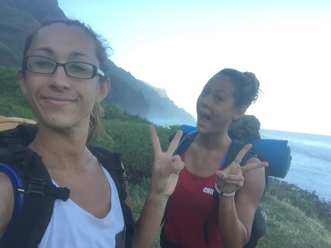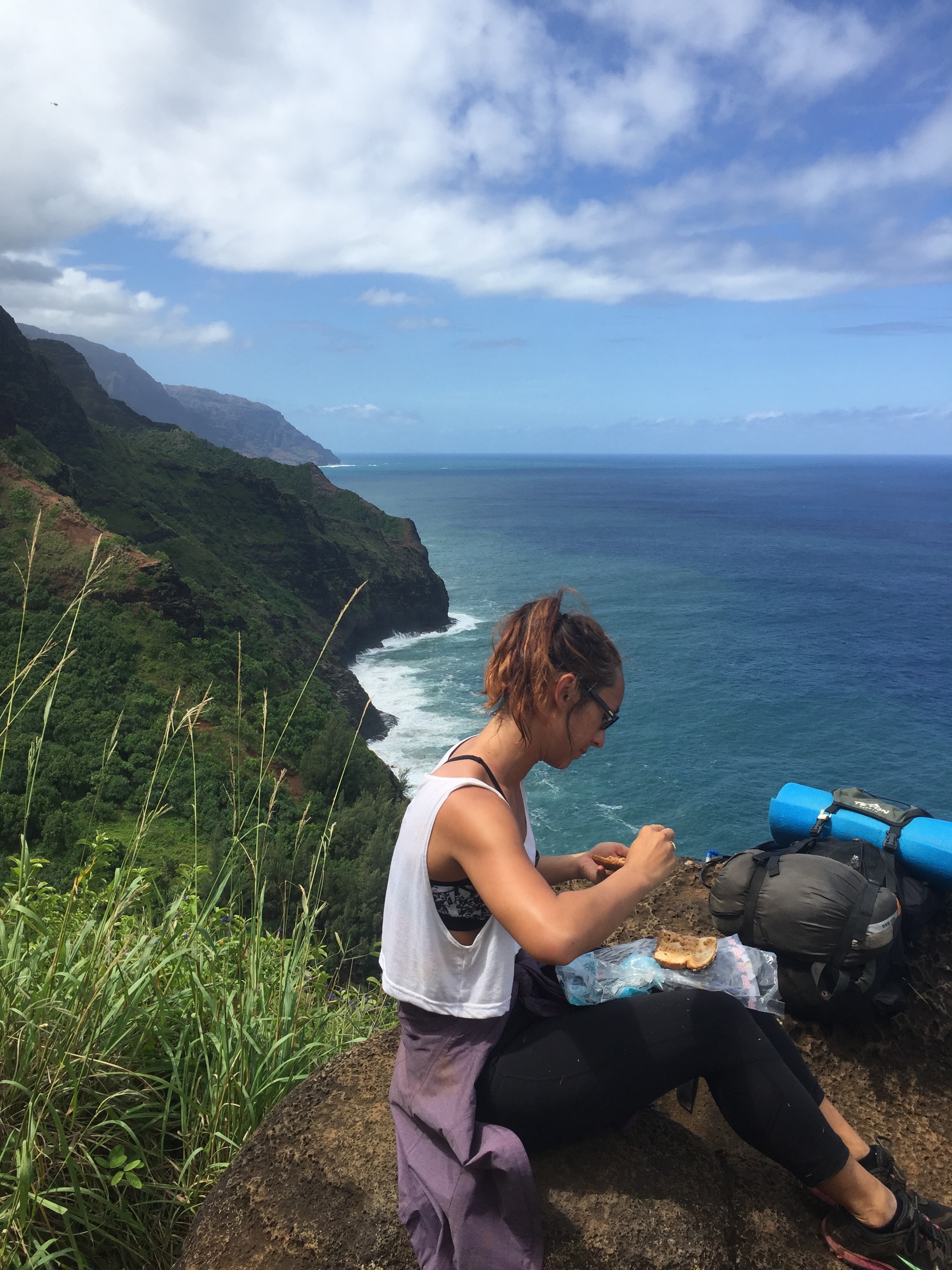 If you are not an experienced hiker, do not assume you can do this hike. Actually, literally, train for it. 22 miles is long AF, and you are going to need to be in shape. If your daily exercise consists of spin classes at your cushy gym, you are not in shape for this. The trek requires a backpack filled with necessities, and unless you plan on running the 22 miles w/o staying at the beach to camp (only my sister’s crazy bf does this), you’ll 100% need everything. All of these necessities combined can get up to 30 lbs, and carrying that amount of weight for 22 miles isn’t easy. So TRAIN, ya hear? That being said, only bring NECESSITIES. Prior to the Kalalau Trail, Sara and I had never backpacked, so we made the rookie mistake of being over prepared. Here is what you definitely should bring (make sure to divide the weight evenly amongst your party):