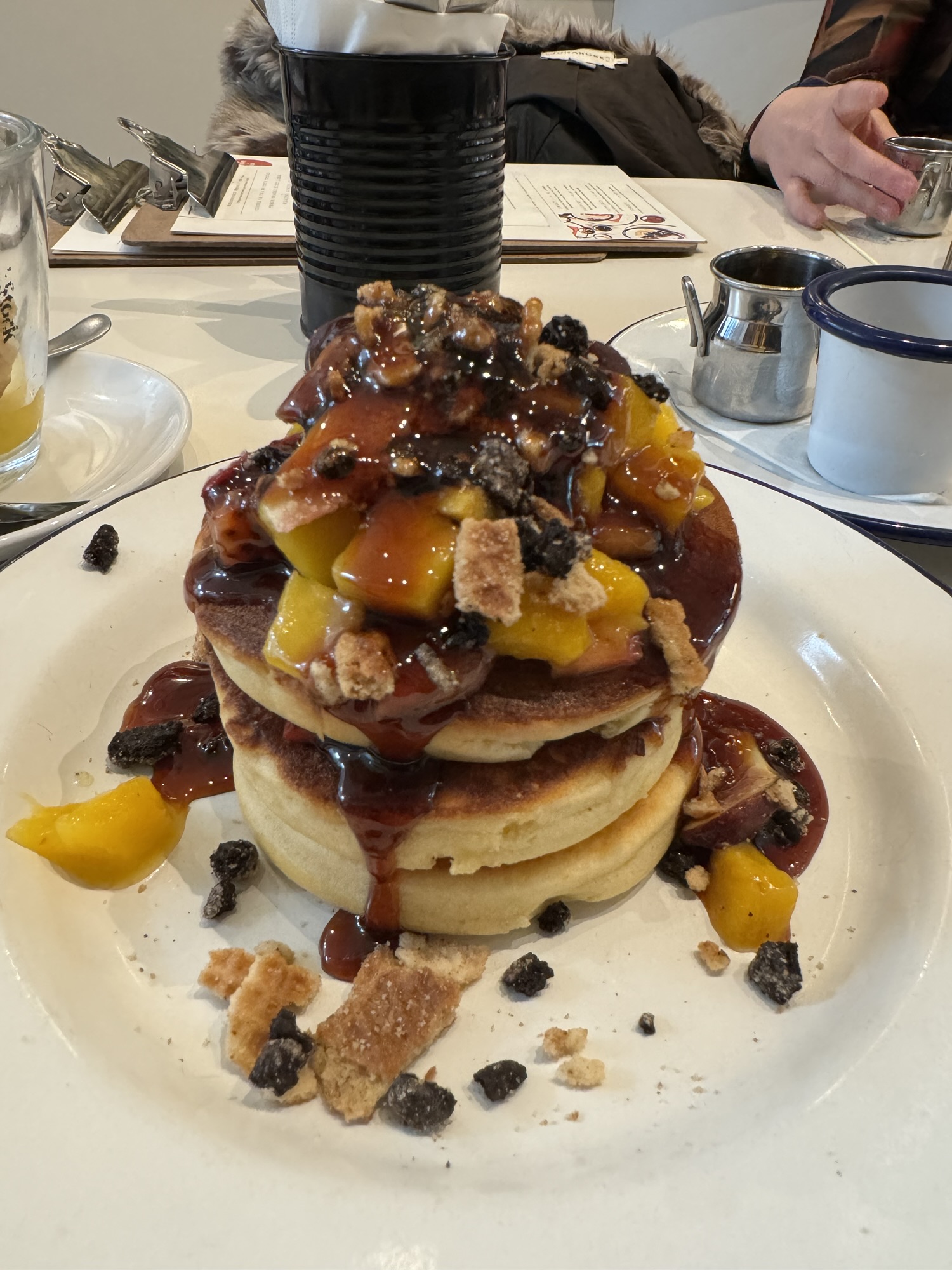 4) Madam Pancake: I don’t think there’s a breakfast food more superior than pancakes, and so, we had to stop in this viral breakfast spot for one of over 10 different types of pancakes. I highly recommend the pancakes with their homemade cookie crumble and mangos. The stack is so big, the three of us didn’t even put a dent in it. Other notable menu items include acai bowls and cocktails.