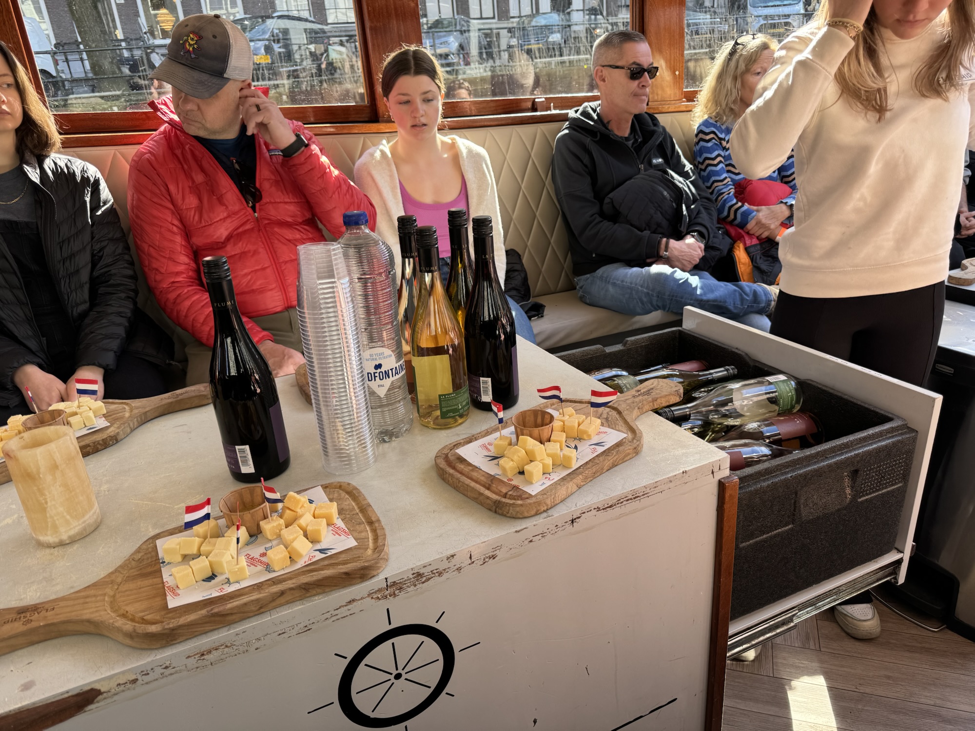 There’s an abundance of tours to choose from, but if you don’t want to do the extra leg work, you can book our tour here. Flagship provided us with a very comfortable experience from start to finish – never letting our wine glasses go empty during our hour sail. The boat was quite cozy as there were 25 of us situated around the perimeter with the hosts navigating from one end to the other. We were given a brief history lesson and provided the sights of the Anne Frank House (where we met to start the tour), the Amsterdam Flower Market, 9 Little Streets, and the Houseboat Museum.