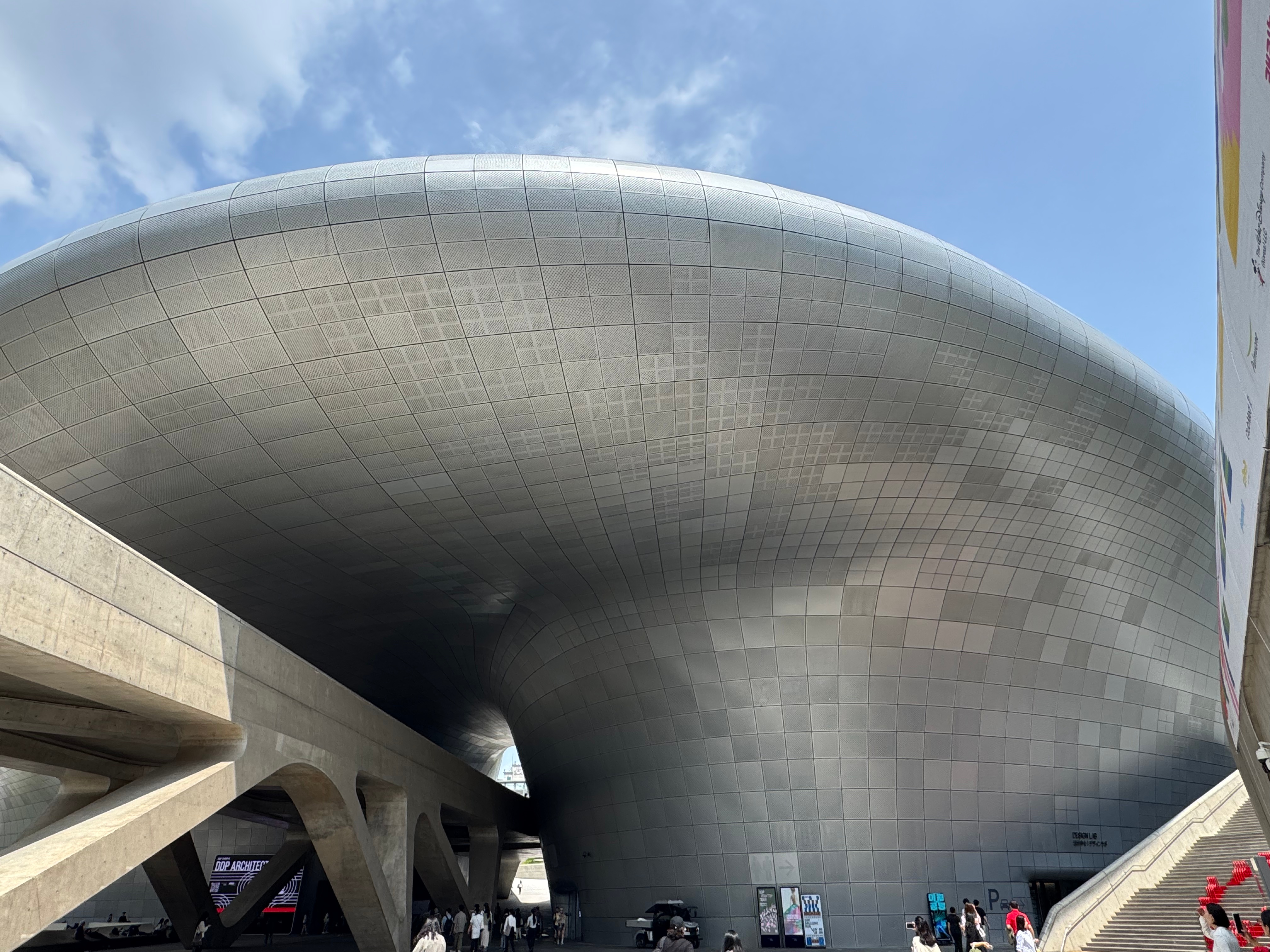 - Dongdaemun Design Plaza: A HUGE (eyesore of an) establishment amidst Korea’s simplistic architecture. The grounds are free to roam and there are some fun, locally made pieces in the store at the base of the multi-level museum. If you want to pay the entrance fee of $10-15 USD, you can view whatever exhibits are on the rotation.