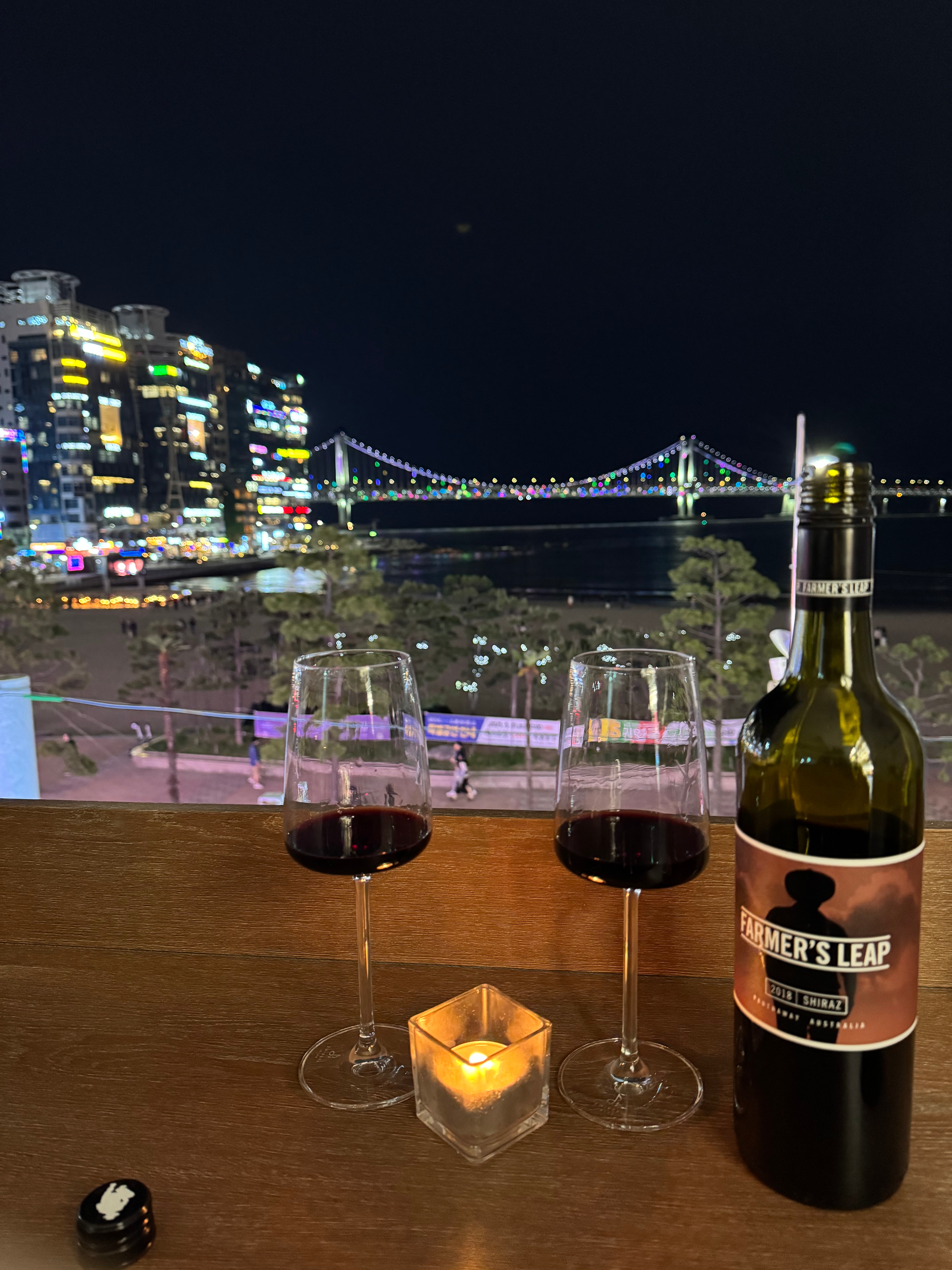 - Sipsipsip Bar: Looking for a quiet place to unwind with a glass of wine? This rooftop bar overlooks Gwangalli Beach in all her glory. You’ll catch stellar views of the Gwangan Bridge (pictured) and, if you’re lucky, a few of the boats may send up some fireworks for a mini-show.