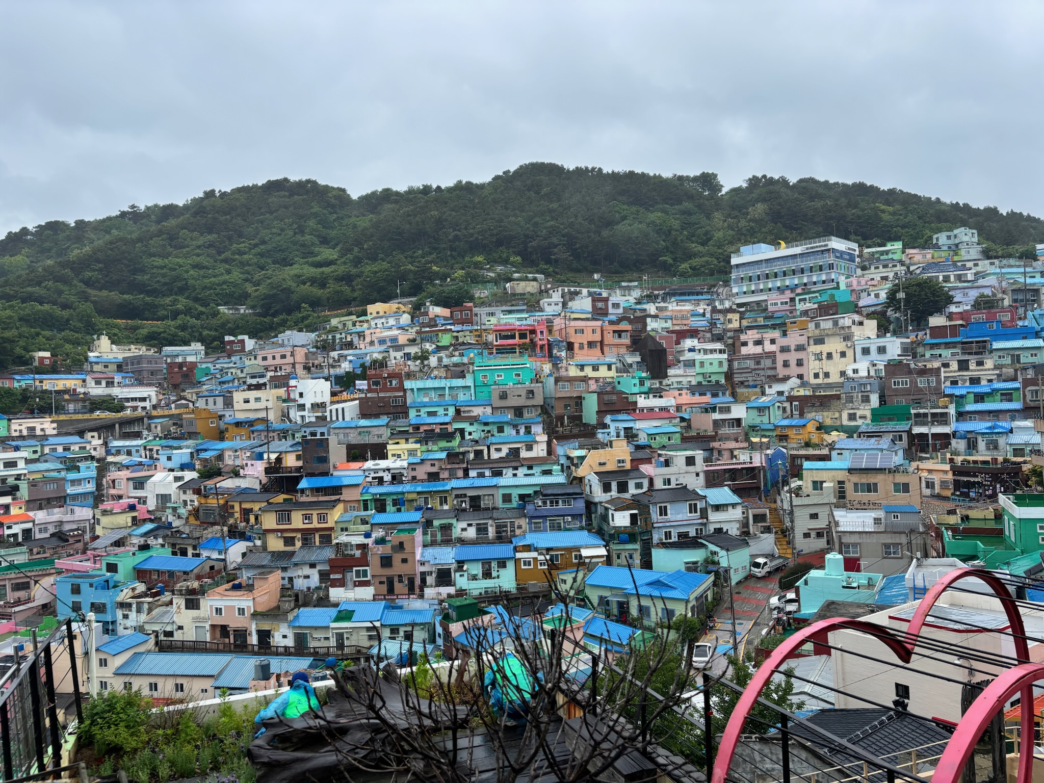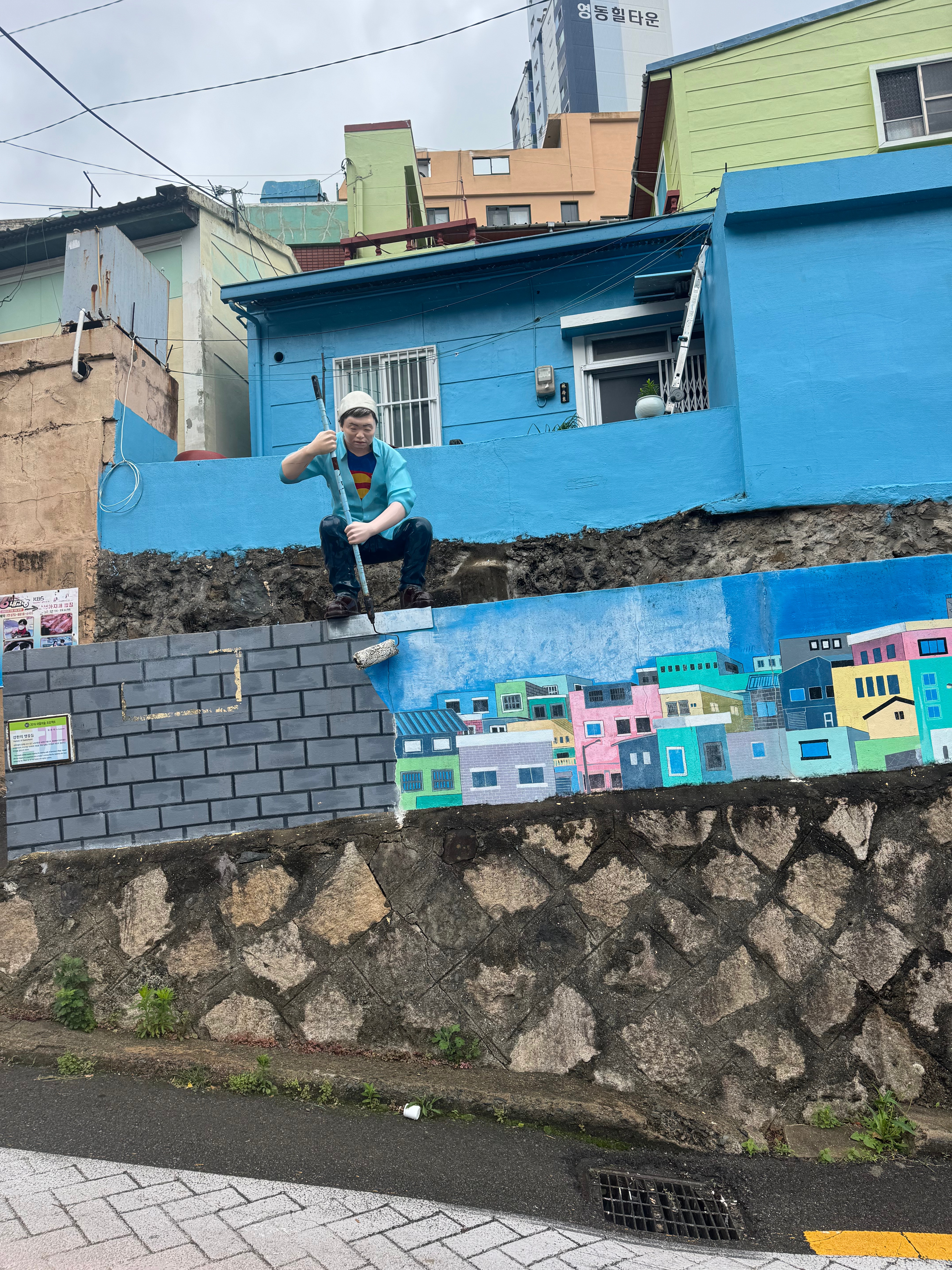 - Blue House on the Stairs: Cute, little pit stop for some beverages and to wait for the rain to pass. On a sunny day, the rooftop can be enjoyed overlooking all of Gamcheon. Do try their Mont Blanc croissant (try these in literally all bakeries across Korea – they’re a round, risen croissant about the size of a human head), and their cloud latte, which comes with cotton candy as its topper.