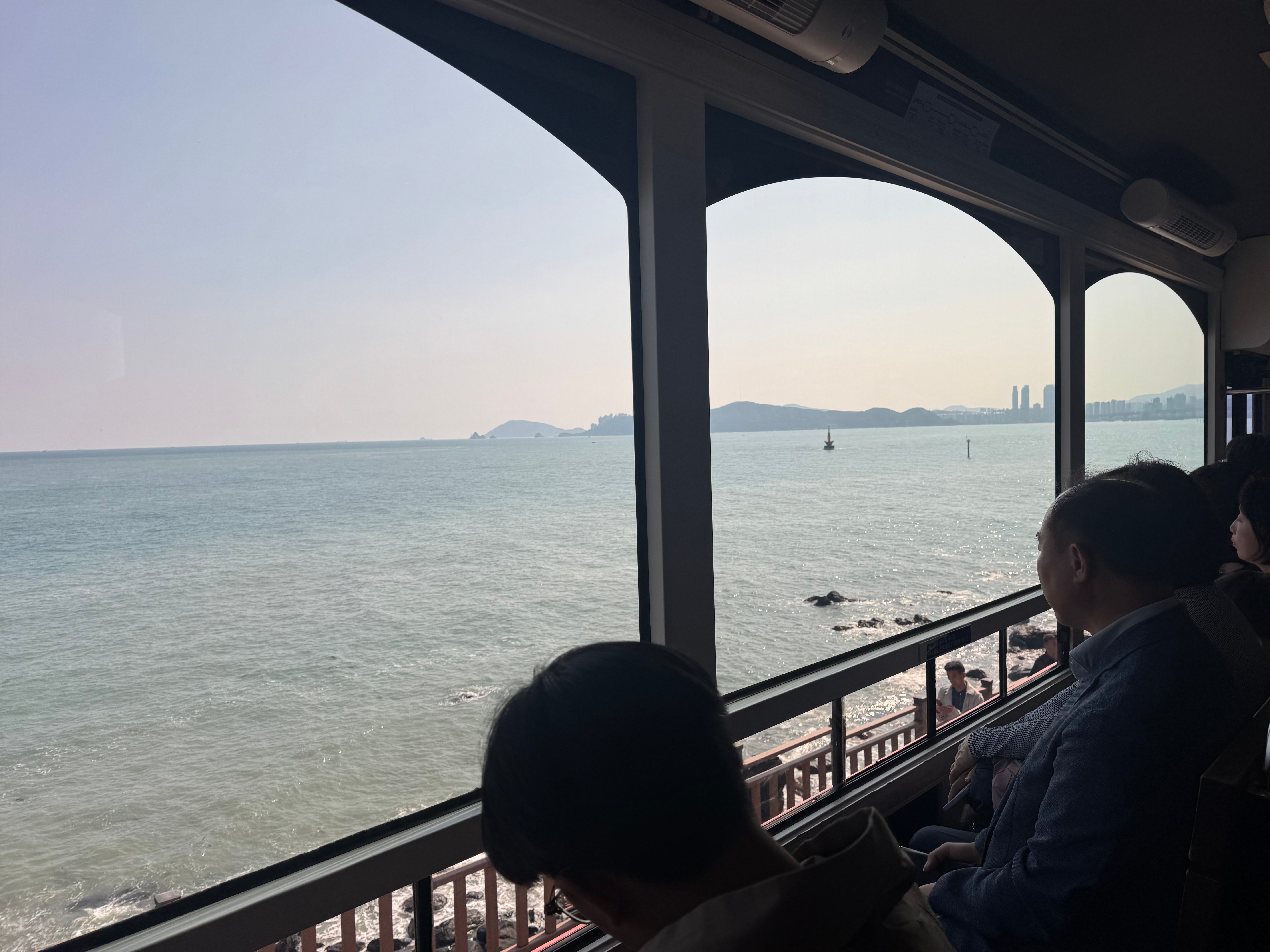 - Haeundae Blueline Beach Train: Starting at the Mipo Station and ending at Cheongsapo, this vintage train with floor-to-ceiling windows offers glimpses of the Busan coastline. Get your tickets early and to the station at least 30 min prior to your departure for better seating choices (or you’ll be left standing for up to 25 minutes). We did the route in reverse as we were in Songjeong, needing to head west towards Haeundae.