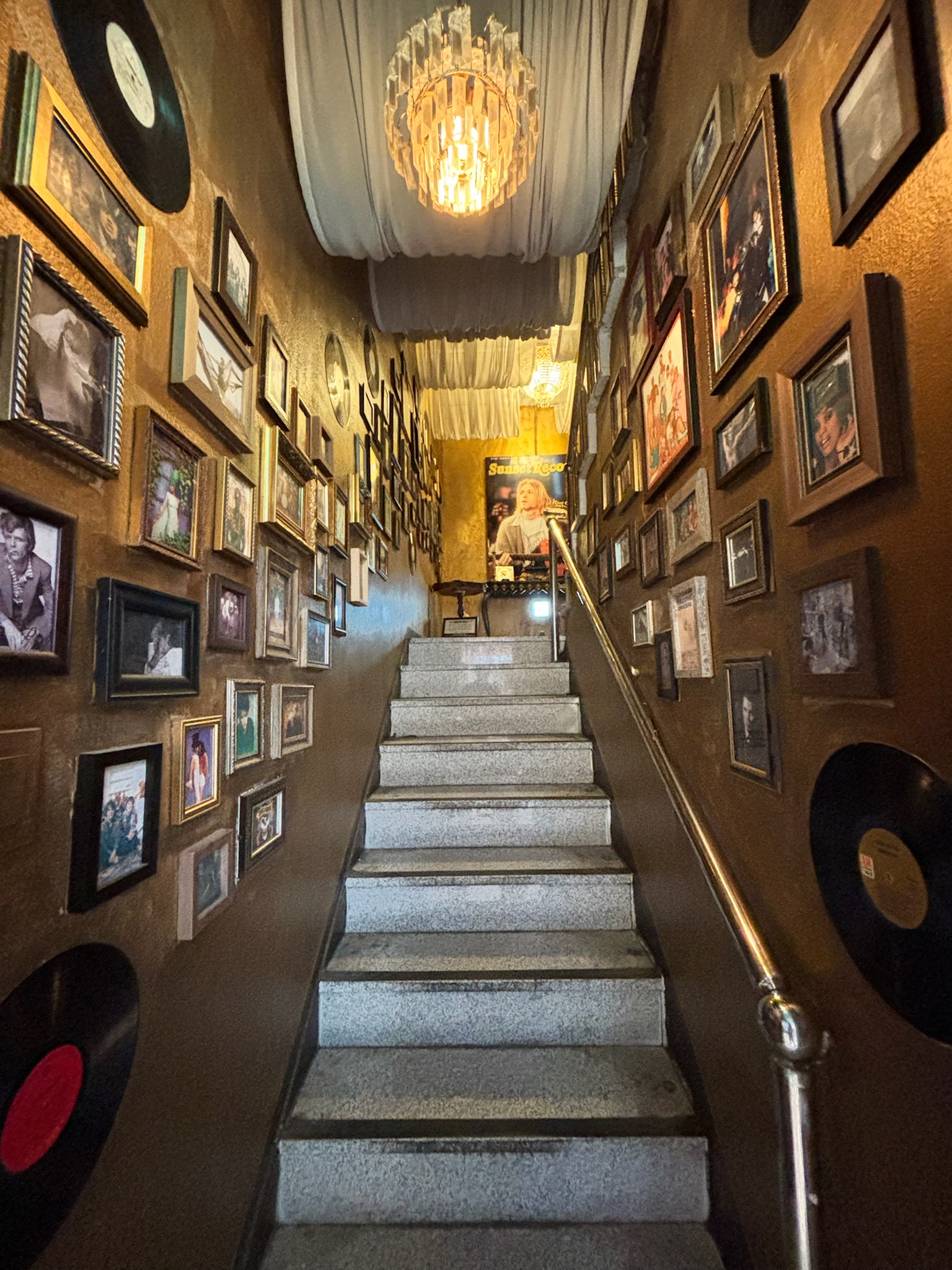 - Sunset Record Bar: Tucked away on the second story and filled with hundreds of records, Sunset Bar was a relaxing place for us to rest our weary legs before heading to our Airbnb for the night. We had a good laugh at the gaudy decor: a smoky fountain in the middle of the bar, neon signs, disco balls, and kitschy framed photos of musical artists. You can request any songs via the bartender and a live DJ will mix them into the rotation. We opted for Bohemian Rhapsody and The Bad Touch.