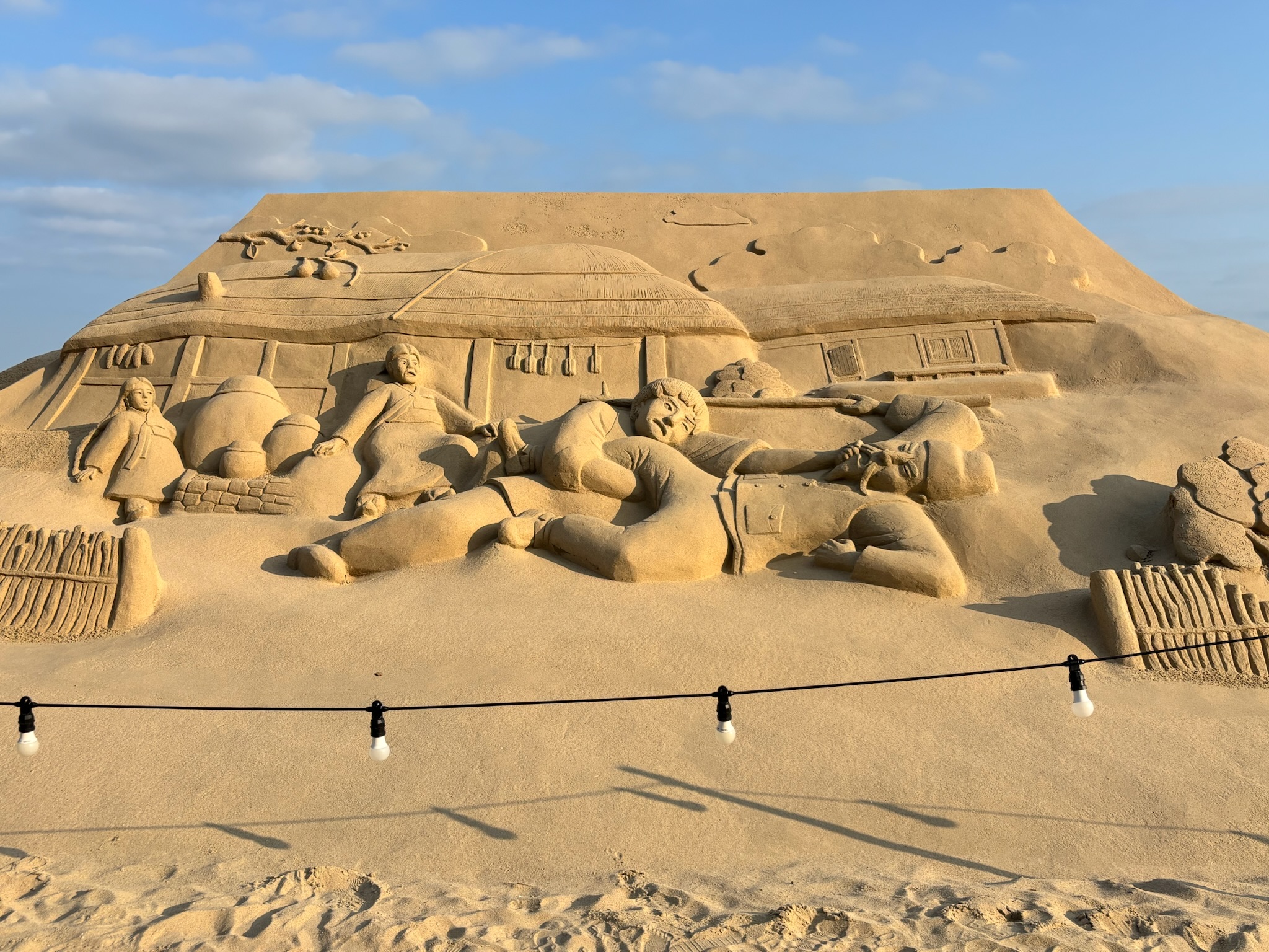 - Haeundae Ogtap Rooftop Bar/Restaurant: Another day, another rooftop bar for a glass of wine to end our long day of walking all over Korea. Visible from the bar is the famous ocean sculpture of a woman with outstretched arms, as well as the many sand sculptures from the community’s annual Sand Festival. The sculptures all ranged in size, with the more impressive being over 35 feet, and depicted historical figures from Korean history, as well as some American ones, like Michael Jackson.
