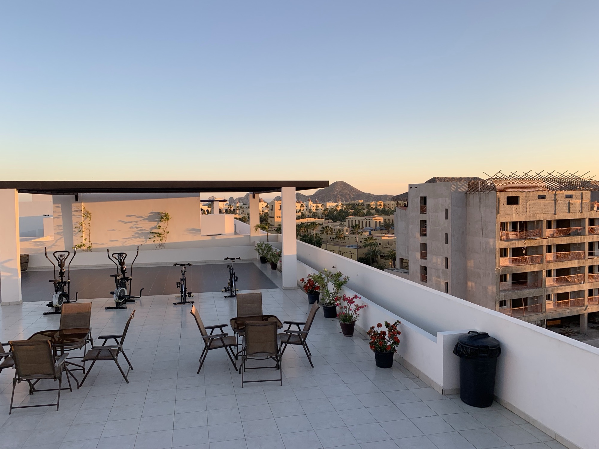 2) Bahia del Tezal Airbnb: Bahia del Tezal is located about one mile inland from Medano Beach, making its walkability one of the more enticing reasons to book. If you are hosting a small group, you’ll be comfortable with two bedrooms, two baths, and a full kitchen. Added bonus: a rooftop with multiple exercise bikes and an infinity pool overlooking the ocean.