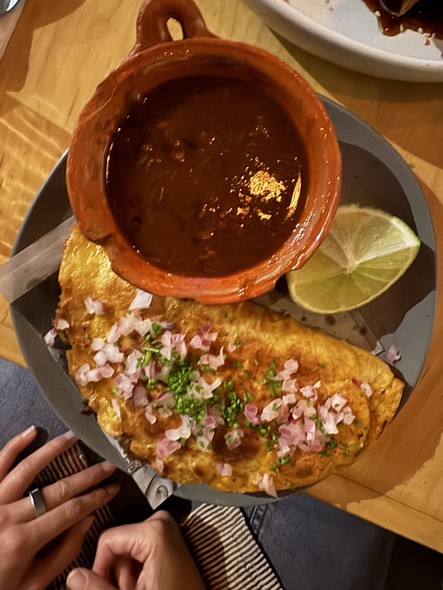 The above shot is black-wasp soaked mezcal. Traditionally, it was thought the poison from the wasp would elicit hallucinations. Sadly, I did not hallucinate, but I did enjoy the smooth flavor of the mezcal. I highly recommend this spot for the dog-watching (there are so many!!!!), as well as the very queer soundtrack (Gaga and ABBA on rotation). I could have spent an entire day vibing here. 20/10 recommend.