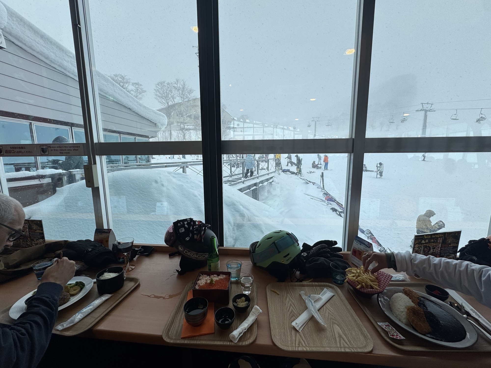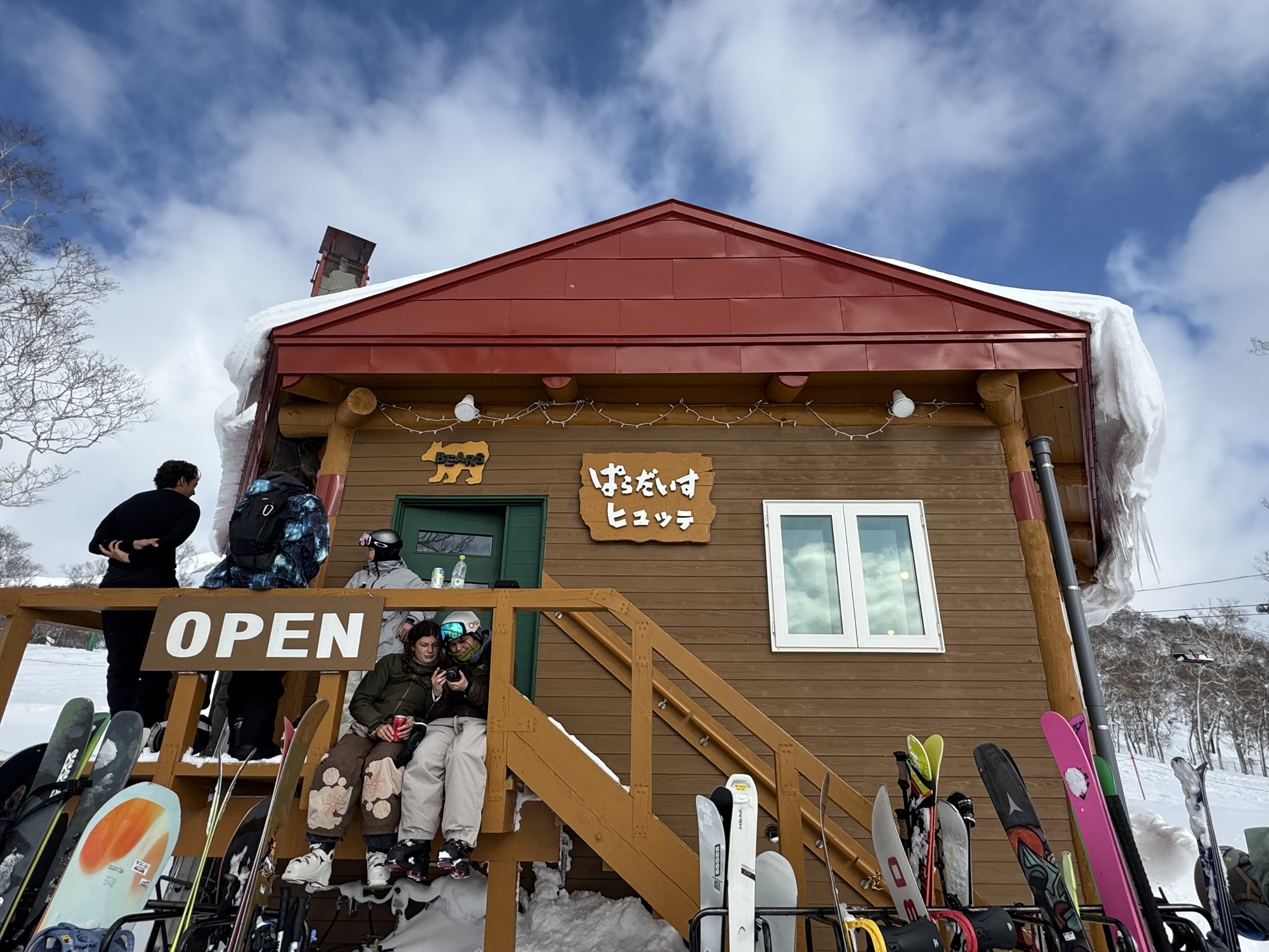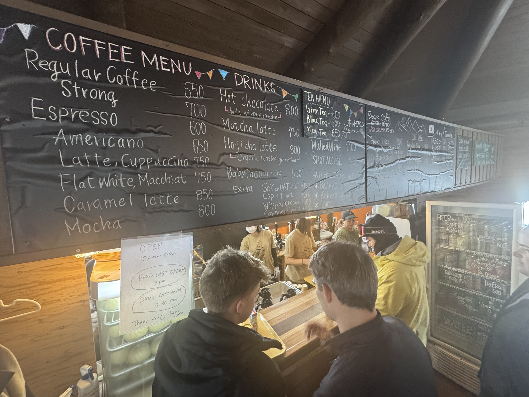 - Bears Cafe: Ride about a quarter of the way down from the Jumbo Quad Lift to reach this picturesque hut. With only 26 seats, Bears Cafe can get packed to the brim with riders in need of its famous pork bao (buns) the size of a head. I also recommend trying the hojicha latte for its robust, roasted flavor, and the mulled wine.