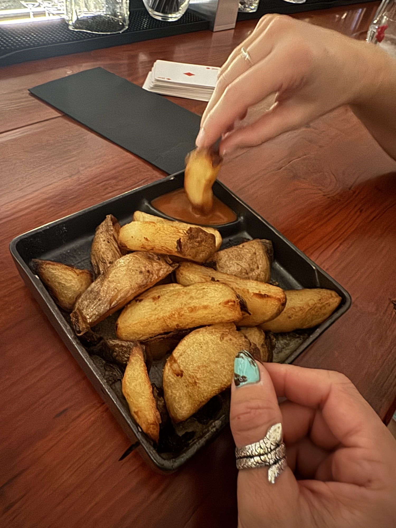 - Kaguya: Nestled in the multi-level establishment, Phoenix, this swanky cocktail bar checked all of my boxes: dim-lighting, a friendly bartender, and the best dry martini I’ve ever had with sesame dry vermouth, vodka, salt, and sesame oil. I couldn’t even get myself to try anything else on the menu – seriously, it was that good. If you’re looking for food, hats off to the chef: wagyu steak, chicken liver pate, venison stew, hamachi crudo, and a king salmon steak are a few of the items you can order.
