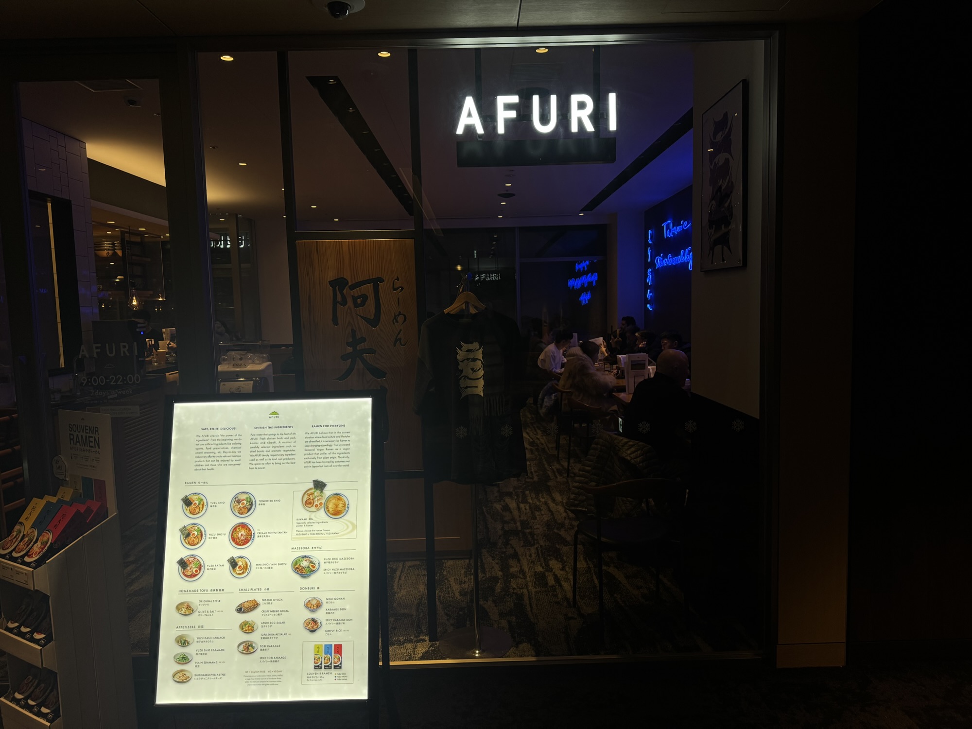 - Afuri Ramen: Though this famous chain has locations in the United States, having a bowl in Japan just feels right. While I can’t speak for the other locations, the Niseko Afuri is efficient, and the product never falters. My go to is the creamy tonyu tantan with spicy miso tare, soy milk, gyokuro tea, miso cashew nuts, garlic chives, pine nuts, green onion, sesame, chili flakes, and thick noodles. As with most internationally renowned restaurants, reservations are crucial.