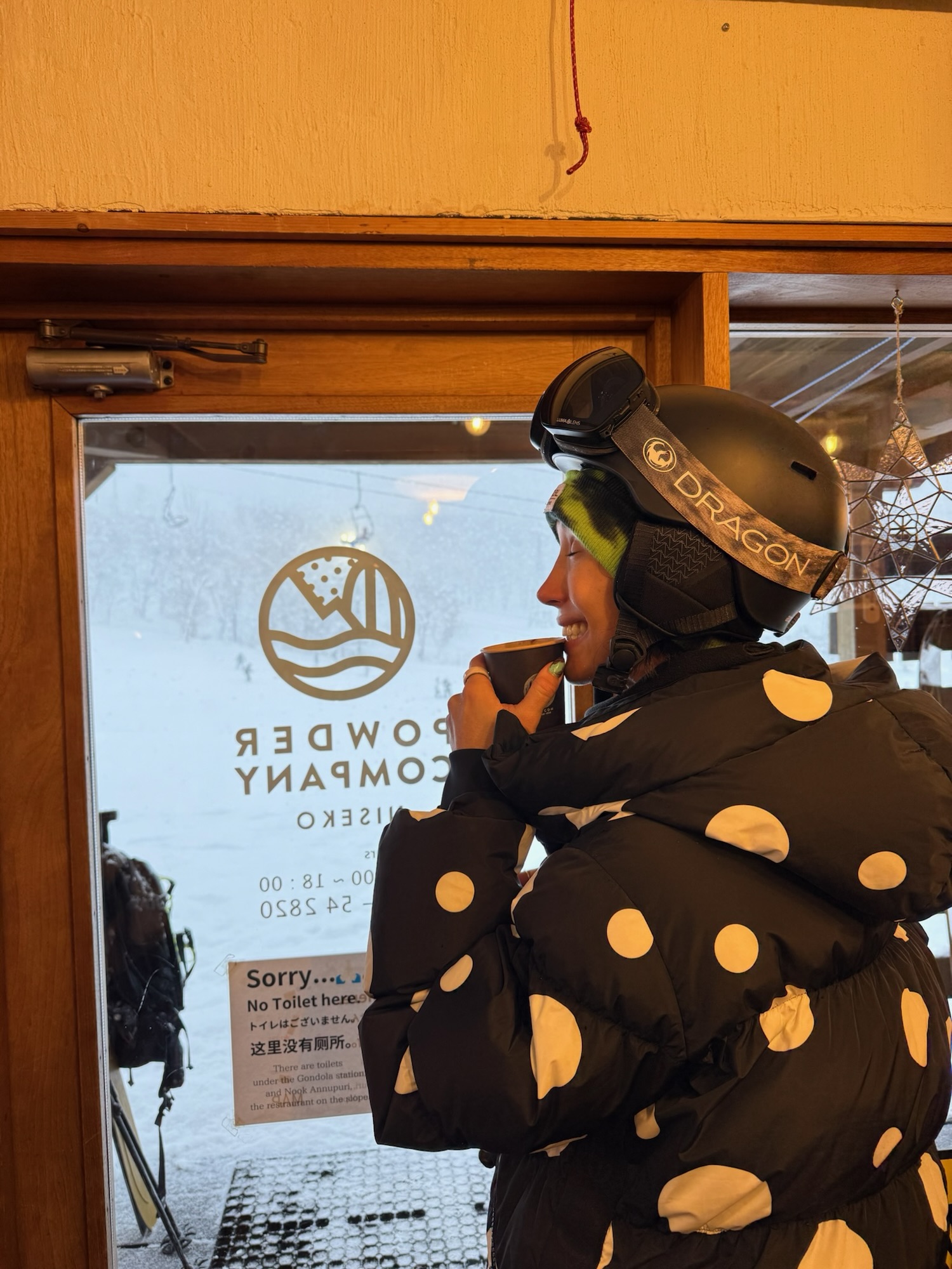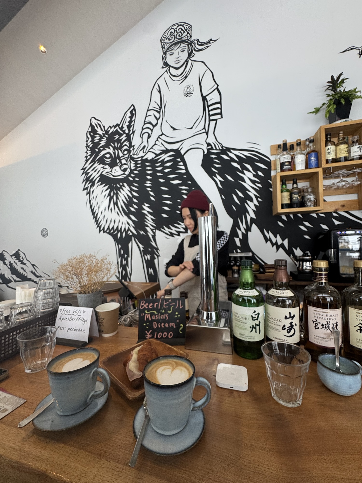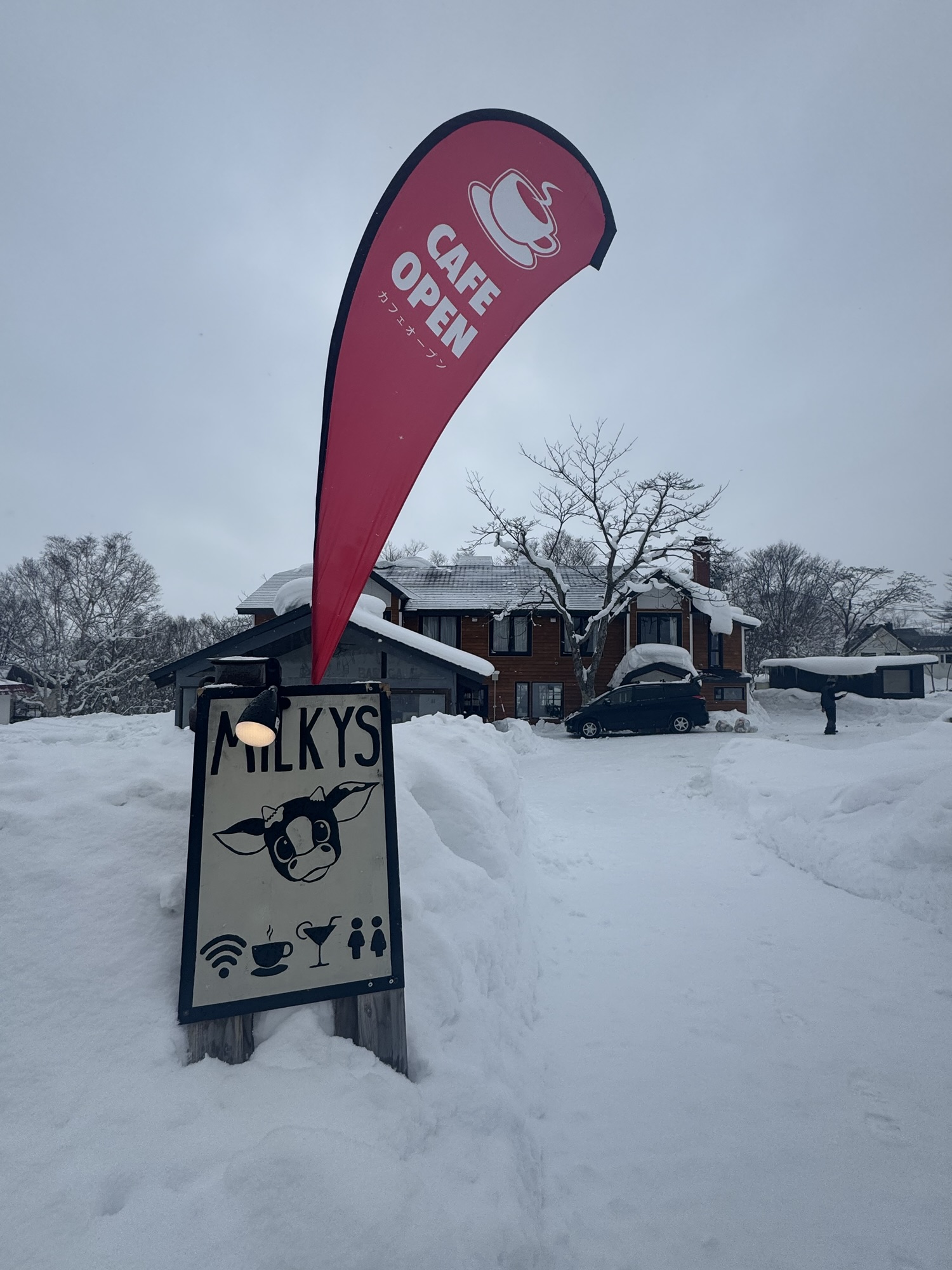 - Milky’s Cafe & Bar: Stop into Milky’s for a cup of coffee before you hit the mountain, for a shot of whiskey during your lunch break, and a hot toddy to end your day. This cute, little shop is just a short walk from the base of Annupuri, so depending on where you’re staying, you could run into it (if you’re ambitiously walking). We did happen to ambitiously walk from Kanronomori to grab some fresh coffee one morning, and it was the boost of energy we needed to traverse some side country runs. I highly recommend trying the homemade brownie and a Bailey’s latte.