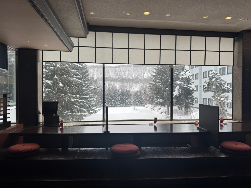 - Hotel Kanronomori: 15 min east of Niseko Village, sits this quaint and quiet hotel. Kanronomori is for the traveler who wants to unwind in peace after hitting pow all day. Guests can enjoy live music in the lobby on weekend evenings, hit the gym for a good stretching session, and/or relax in the onsen. Additionally, there is one on-site restaurant offering breakfast and dinner amidst views of snowfall. My favorite part of Kanronmori was how quiet it felt at any given point in the day, even though we were there during peak season. An added bonus is its exclusive mountain shuttle running every half hour; we never had to wait long from the hotel to the slopes, and vice versa. Nightly rates always run at least $100 cheaper than name brands like Hilton and Hyatt. I highly recommend this stay.